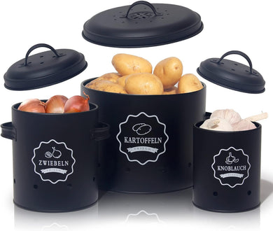 Kartoffel Aufbewahrungsbox [3er Set], Weg für Zwiebel Kartoffel Aufbewahrung und Knoblauch Aufbewahrung, hält Gemüse länger frisch (Matt Schwarz)