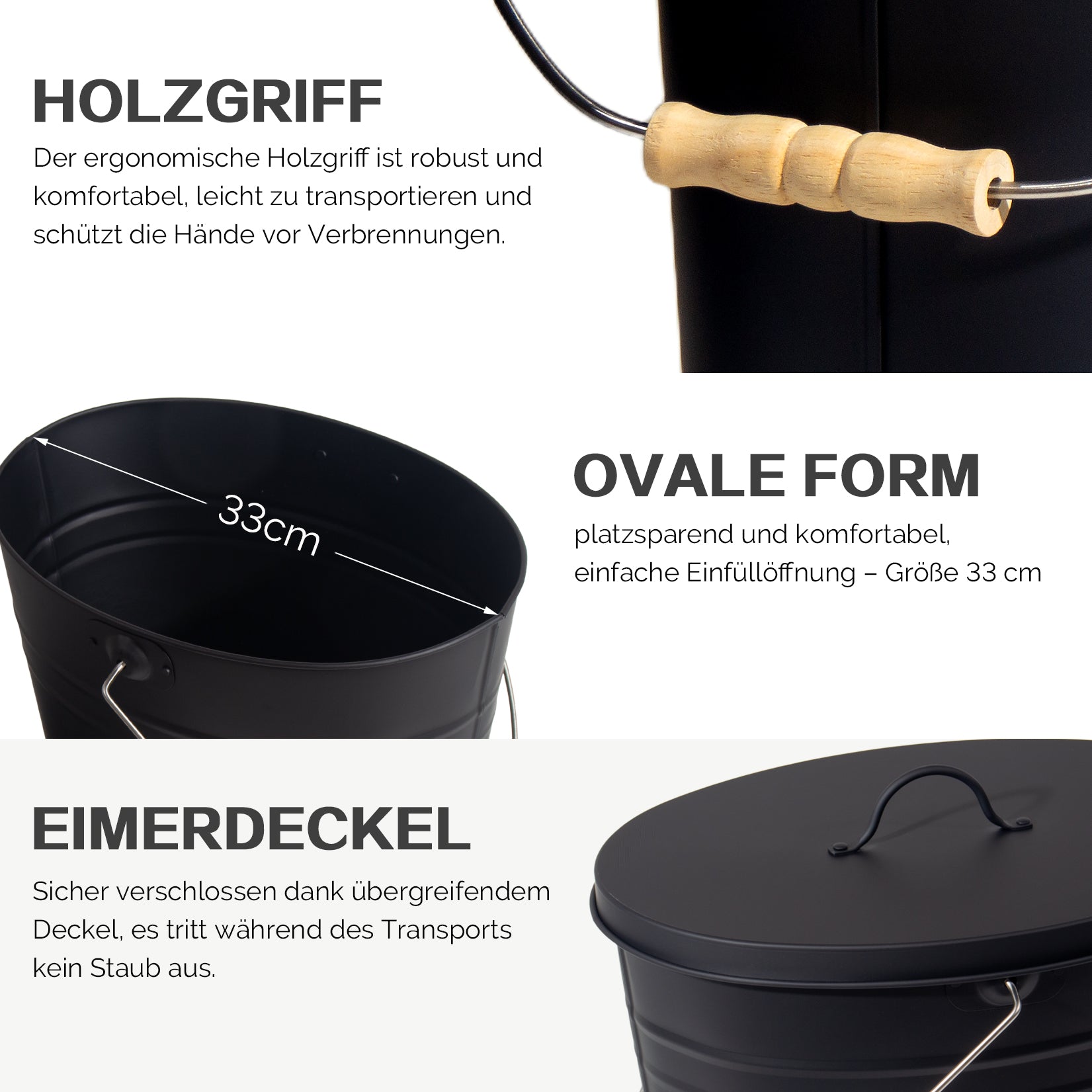 - Langlebig: Kohleeimer und Ascheschaufel aus robustem Stahl mit Pulverbeschichtung - In Matt-Schwarz