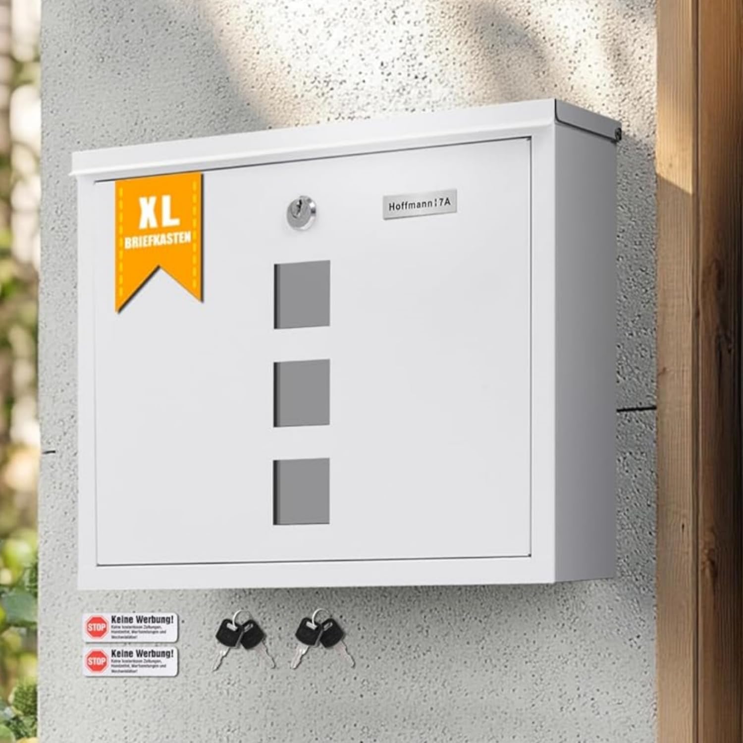 - 【Sichtfenster und Schloss】Das Sichtfenster aus Acrylglas erlaubt einen kleinen Einblick in den Wandbriefkasten und Sie sehen sofort, ob neue Post eingetroffen ist.Ausgestattet mit einem hochwertigen Schloss mit 4 Schlüsseln, um Ihre Post sicher für Sie zu halten.
