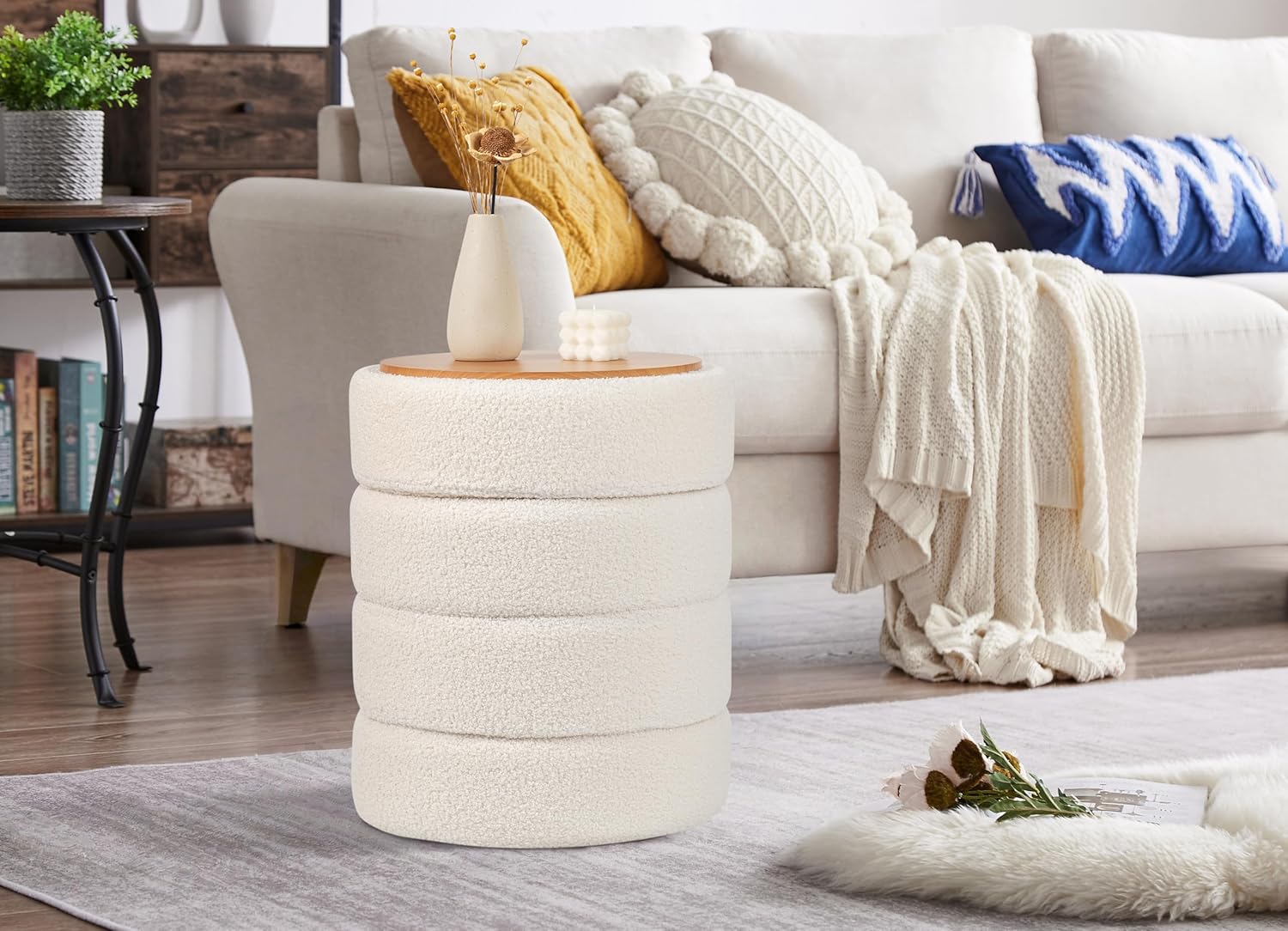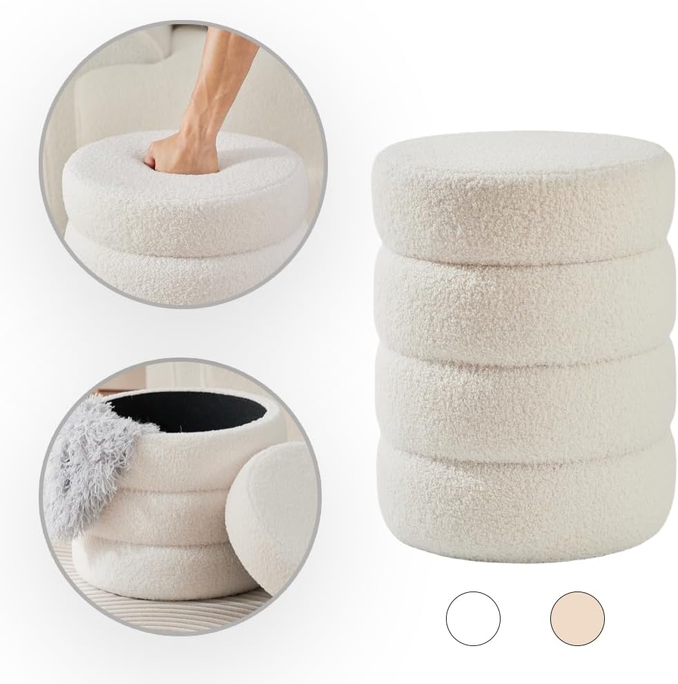 Der Teddy Hocker mit Stauraum bietet Ihnen nicht nur eine gemütliche Sitzgelegenheit, sondern auch zusätzlichen Stauraum für Ihre persönlichen Gegenstände. Mit seinem runden Design und dem weißen Bezug fügt er sich perfekt in jedes Wohnambiente ein. Profitieren Sie von kostenloser Lieferung innerhalb Deutschlands.